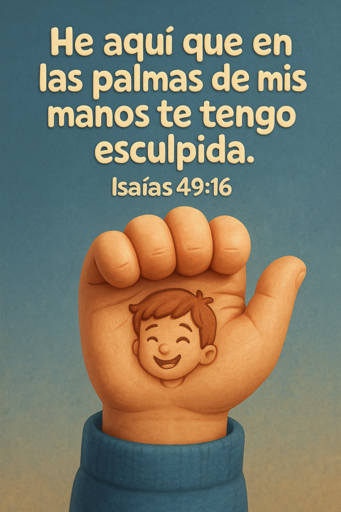 A veces pensamos que Dios está muy ocupado, cuidando de muchas personas, y que tal vez se olvida de nosotros. Pero la Biblia dice algo hermoso: ¡tu nombre está escrito en las manos de Dios! ✨ Eso significa que siempre te recuerda, que no hay un solo día en que deje de pensar en ti.
