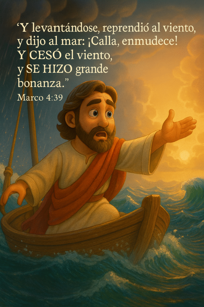 Cuando lo despertaron, Jesús se levantó, miró al mar y dijo: “¡Calla, enmudece!” En ese instante, el viento se detuvo y el mar se calmó. A veces, en la vida también enfrentamos “tormentas”: miedos, problemas o momentos difíciles. Pero Jesús sigue siendo el mismo, y cuando Él habla, todo vuelve a la calma.